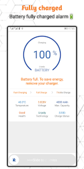 - Battery 100% Charge は、携帯電話の過充電を防ぐ非常に便利なアプリケーションです。
